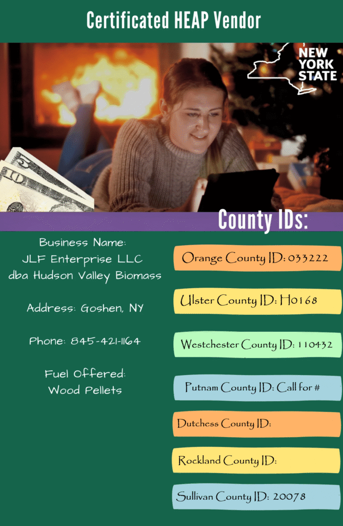 As a HEAP-Certified Vendor, Hudson Valley Biomass is now authorized to supply wood pellets to households participating in the program across: